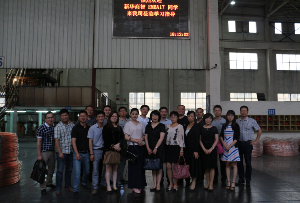 5月24日下午,由新华商智培训教育集团组织,红杉铜业财务总监陈燕容女士的极力邀请,EMBA总裁17班的班组活动走进红杉铜业,开展小组活动。EMBA17班的班组成员均来自无锡市各行各业公司的,本次活动,同学们通过红杉铜业的积极组织与介绍,对红杉铜业有了清晰的认识,探讨同为制造业或其他行业面临的问题,学习工作中解决困惑的办法。整个学习在轻松洋溢的过程中结束。学习结束后,财务总监陈燕容女士安排全体同学来到红杉食府享用晚宴,同学们共同庆祝圆满的结束。