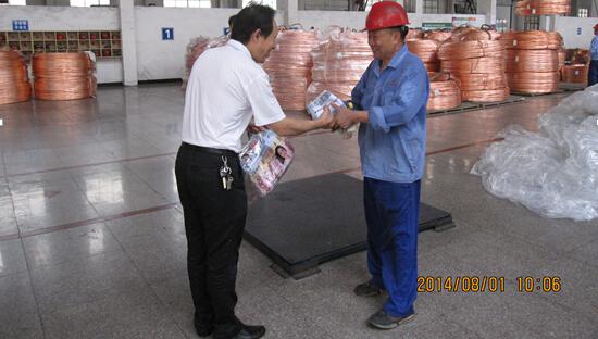 2014年8月1日,无锡市滨湖区政府相关领导,来到我公司,在董事长刘洪宾介绍下,政府领导对在高温环境下作业的员工进行慰问与交流,炎炎夏日,给大家送来了毛巾与饮料,并发放慰问金1000元,无形中增添了一丝凉意。